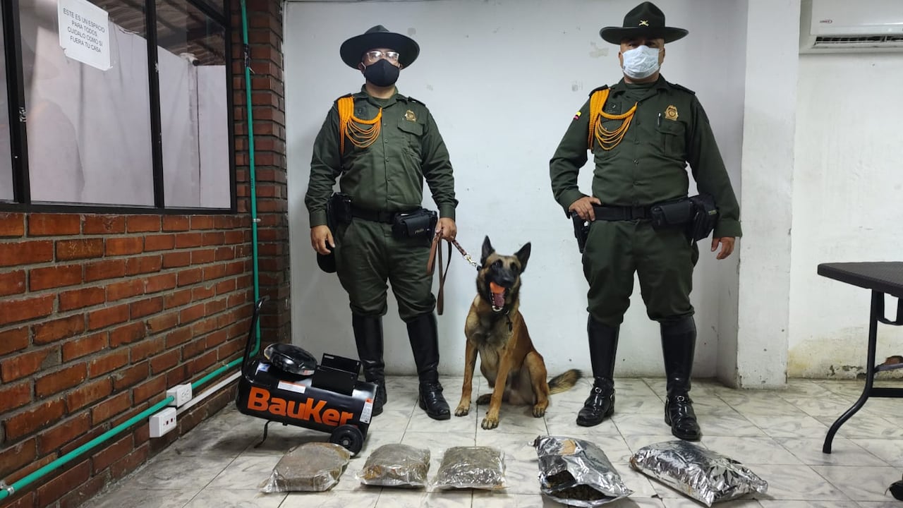 ¡Buen trabajo, 'Tino'! Perro policía detectó 3000 gramos de marihuana oculta en un compresor cilíndrico en Cali