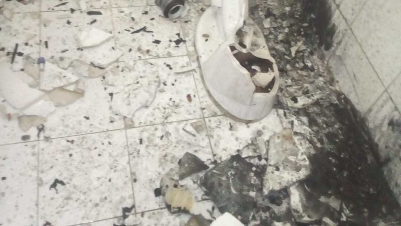 “Pilas, estalla a las 11:35 a. m. Desalojen el bloque ya!! (sic) BOMBA”, se podía leer en unos carteles ubicados en la pared del baño. Las fotografías se viralizaron por redes sociales.