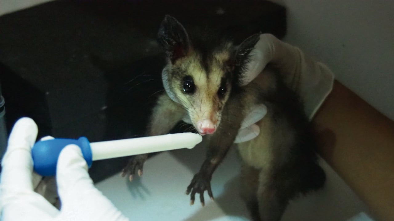 Luego empezó el proceso de recuperación en el que debieron hacer el papel de madre. “Todos los días había que alimentarla cada tres horas, incluso en las madrugadas. Tocaba alimentarla con un catéter”, aseguran. La zarigüeya, de menos de dos meses de nacida, empezó a comer poco a poco por sí sola y logró recuperarse de manera satisfactoria.