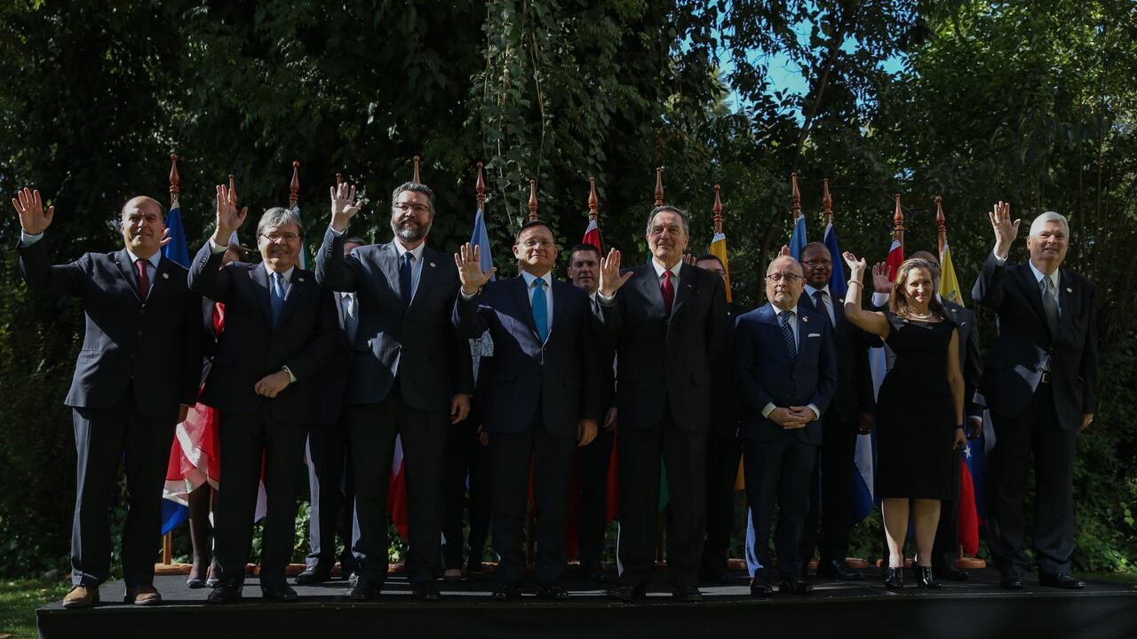 El Grupo de Lima llamó este lunes a la comunidad internacional a favorecer el restablecimiento de la democracia en Venezuela y exhortó a China, Cuba, Rusia y Turquía a sumarse a este proceso "por el impacto negativo" que su apoyo al régimen de Nicolás Maduro causa a Latinoamérica.