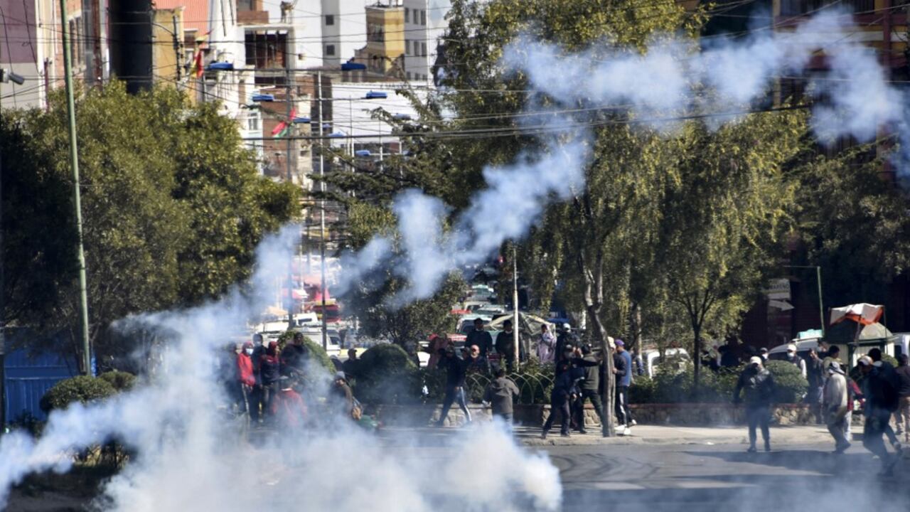 Luego los campesinos comenzaron a lanzar petardos y artefactos explosivos de baja intensidad conocidos como fulminantes de dinamita, lo que obligó a los uniformados a responder con el uso profuso de gases lacrimógenos, constató la AFP.