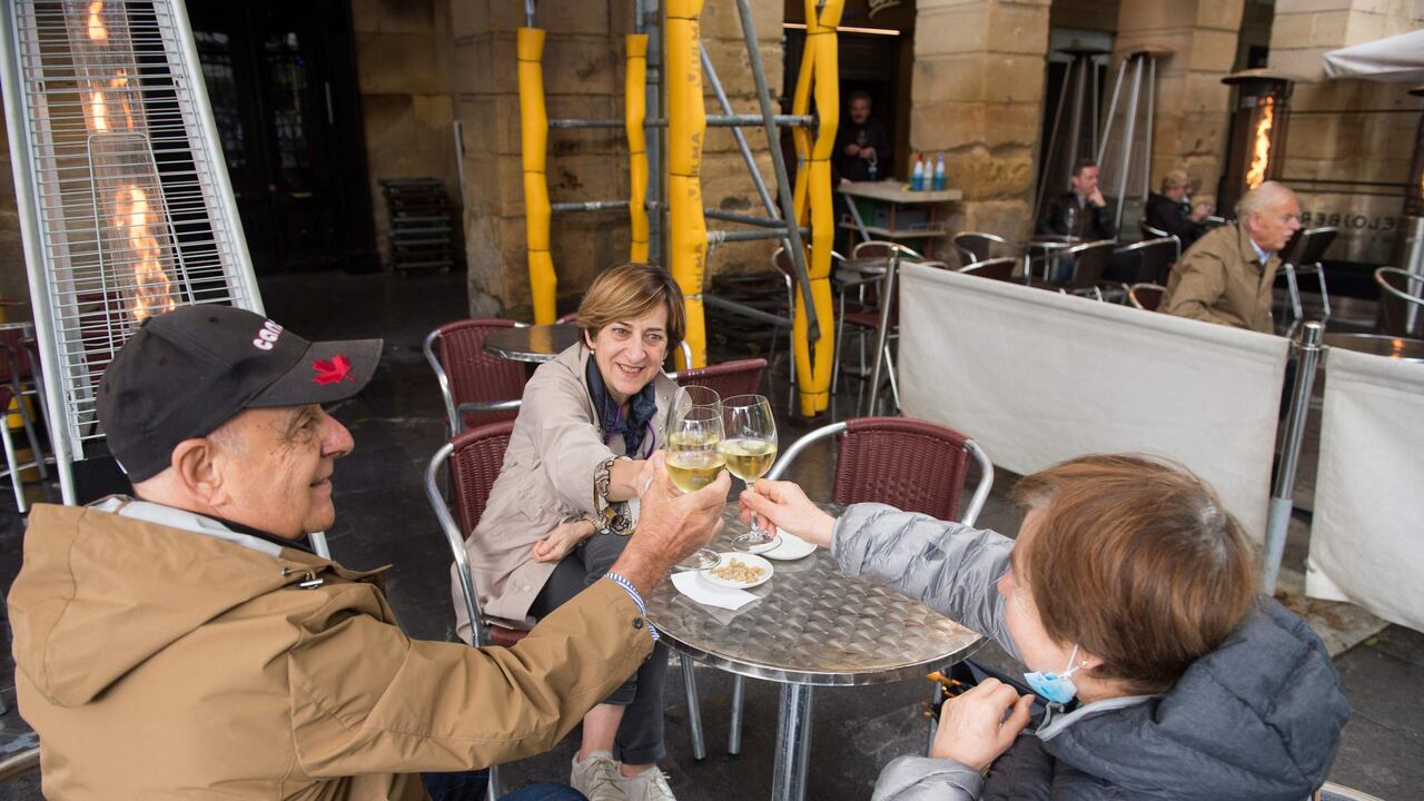 "Después de tanto tiempo encerrados en casa, estamos disfrutando de un reencuentro bajo el sol", dice Marcos Maimó, de 29 años, mientras brinda con tres amigos en Tarragona, al sur de Barcelona.