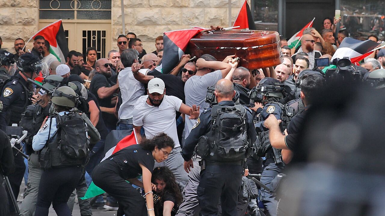 Incidentes violentos estallaron en Jerusalén cuando la policía israelí quiso dispersar a una multitud tras la salida del hospital del féretro de la reportera.