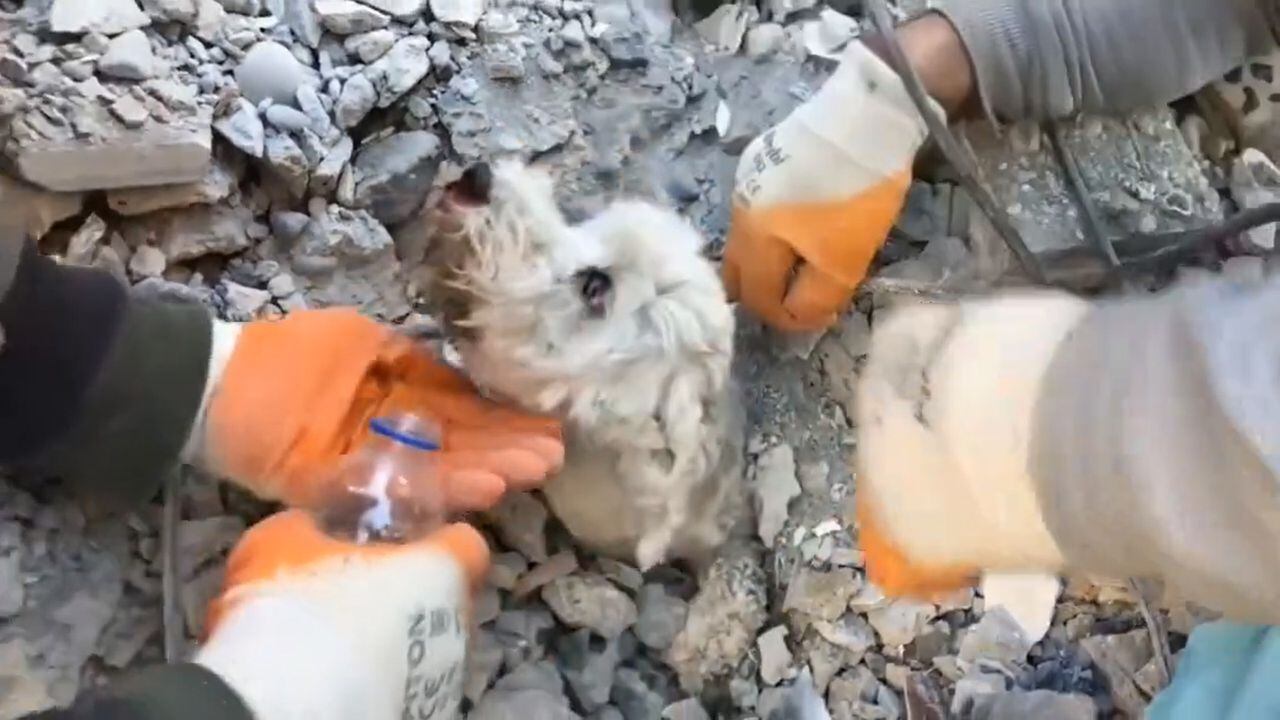 Los equipos de rescate en Turquía pudieron encontrar con vida a un perrito de entre los escombros, en la ciudad de Iskenderun, tres días después del potente terremoto que ya ha dejado más de 17.500 muertos.