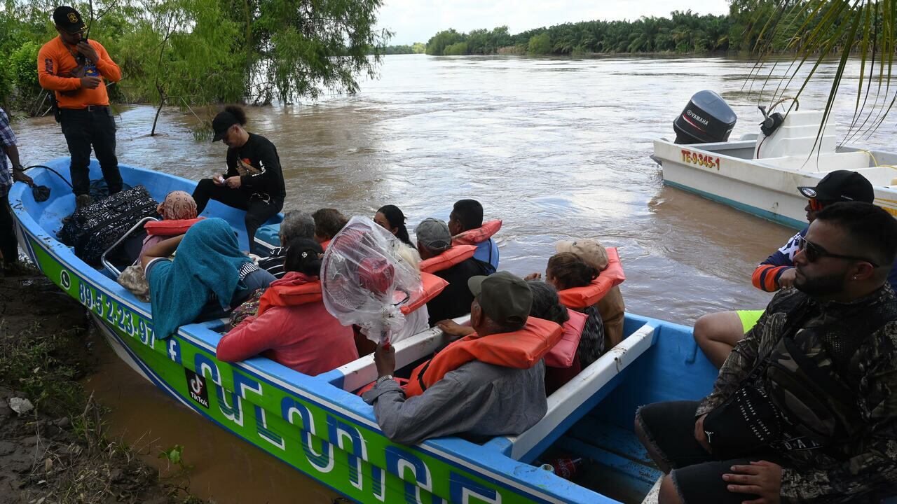 En la zona de El Progreso, los socorristas de Cruz Roja y Bomberos rescataron desde el fin de semana en lanchas con motor fuera de borda a numerosas personas de viviendas inundadas para trasladarlas a albergues o a casas de familiares, constató un fotógrafo de la AFP.