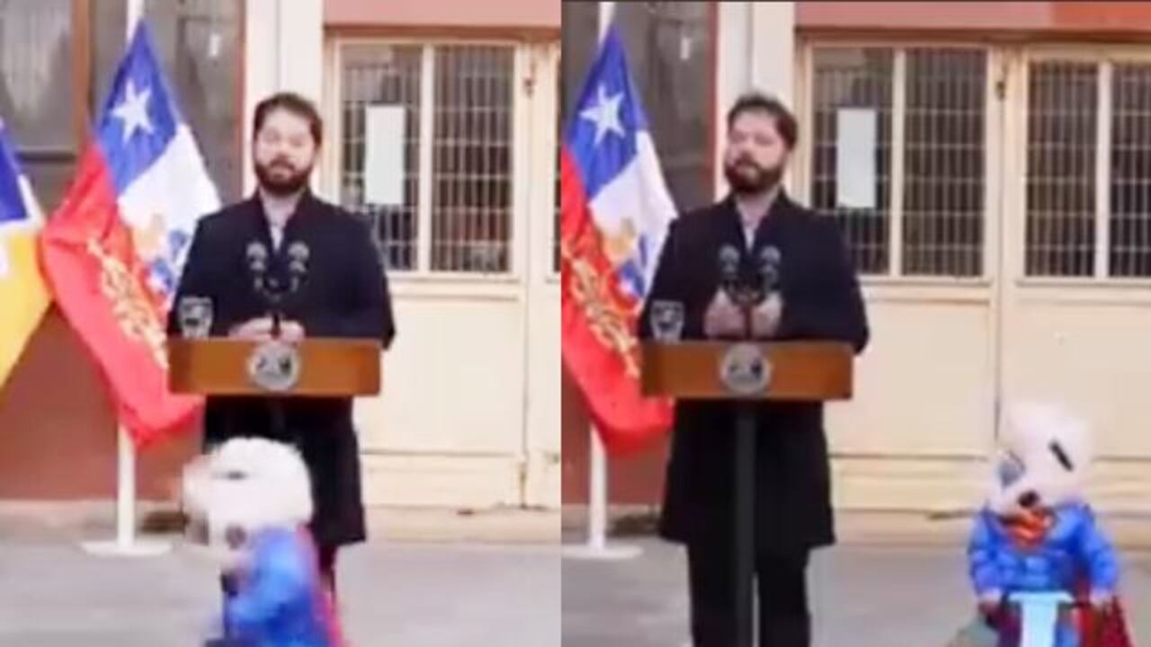 Pese al juego del pequeño, el presidente Gabriel Boric no se inmutó y en ningún momento paró de dirigirse a los ciudadanos.