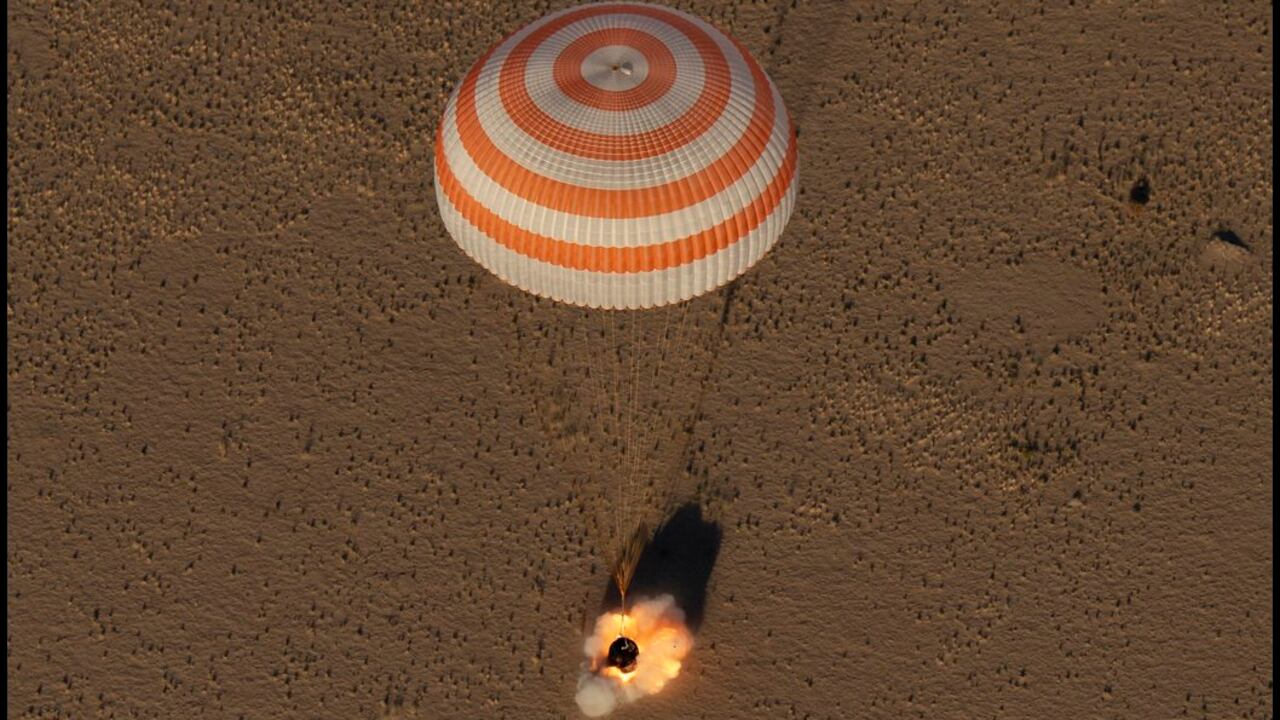 "Felicidades", fue el mensaje dirigido desde el Centro de Control a la tripulación, que aterrizó bajo condiciones meteorológicas óptimas en el desierto kazajo.