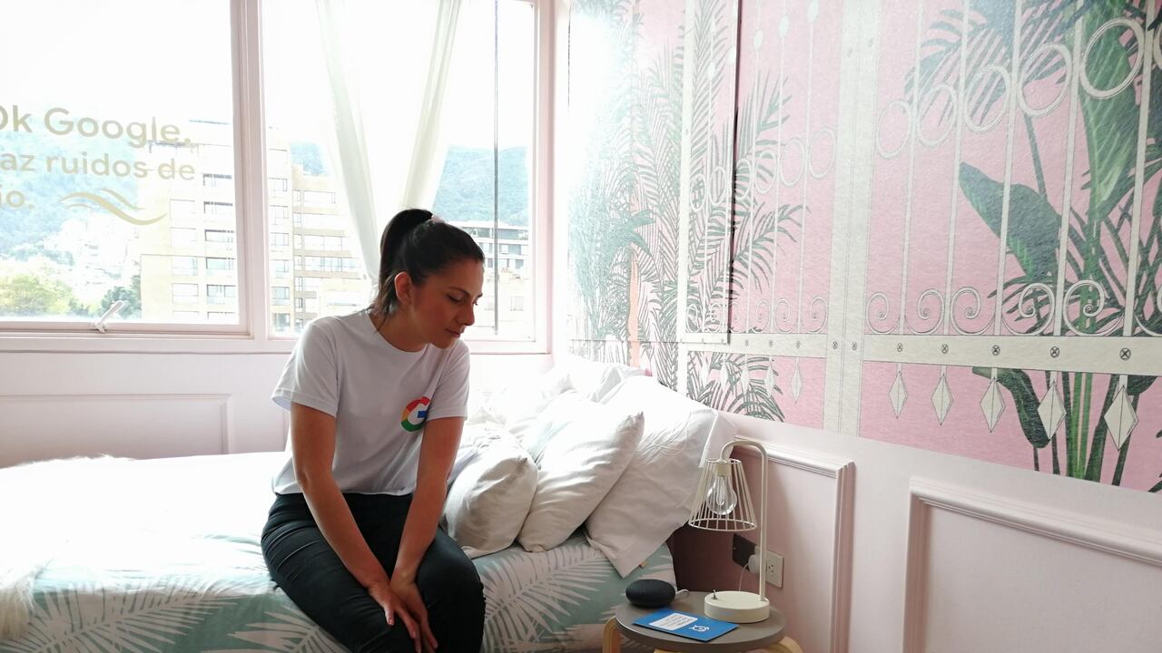 En la primera habitación, que emulaba un espacio digno de la Barbie, una de las colaboradoras de Google le pidió que le ayudará a conciliar el sueño con comandos como “Ok, Google, reproduce sonidos de río”.
