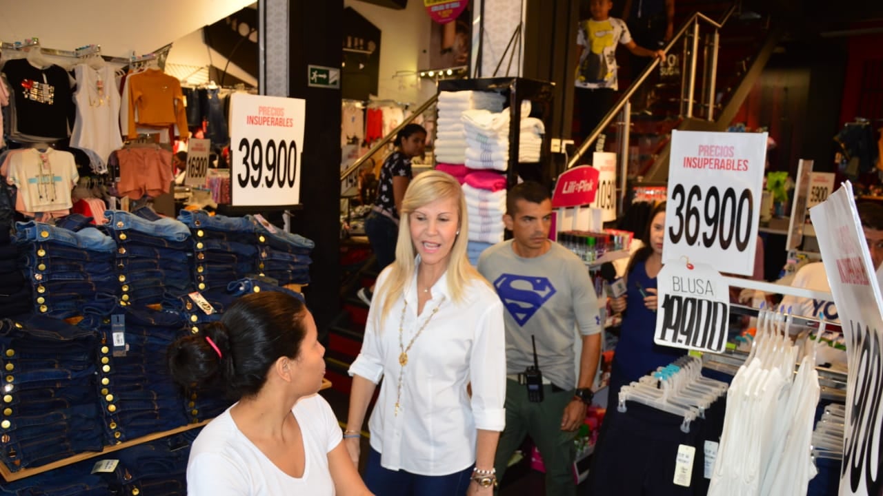 La gobernadora del Valle, Dilian Francisca Toro, fue al centro a dar su voz de apoyo a los comerciantes afectados por las marchas del paro nacional y aprovechó las ofertas para comprar el estreno de la Feria. No supimos si llevó el jean de $39.000 o el de $36.900 y la blusa de $19.900, pero se fue feliz.