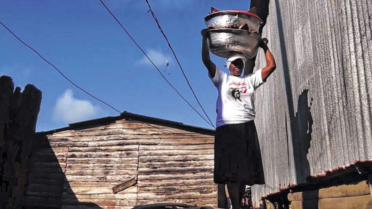 Tiempo después, Rafaela decidió ser una ‘platonera’, por lo que comenzó a salir cada día con uno o dos pailones plateados sobre su cabeza llenos de pescado para la venta. Ella, de tez negra y cabello azabache, aún soporta el peso de los platones que lleva hasta su puesto en una calle de Buenaventura, completando alrededor de 46 años en este oficio, sin pensión alguna.