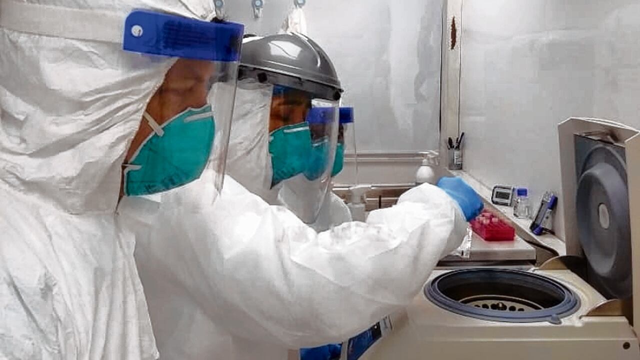 Los especialistas del laboratorio de Salud Departamental realizan el estudio de las muestras Covid-19 en esta cabina de bioseguridad biológica. | Foto: Foto: Especial para El País