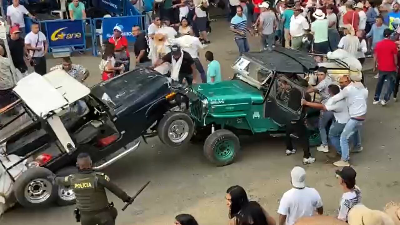 Las imágenes muestran peleas entre ciudadanos que utilizan hasta sus carros para enfrentarse. Incluso, captaron el altercado entre algunos camperos, vehículos que usualmente son utilizados en los desfiles de tradición de estas fiestas municipales.